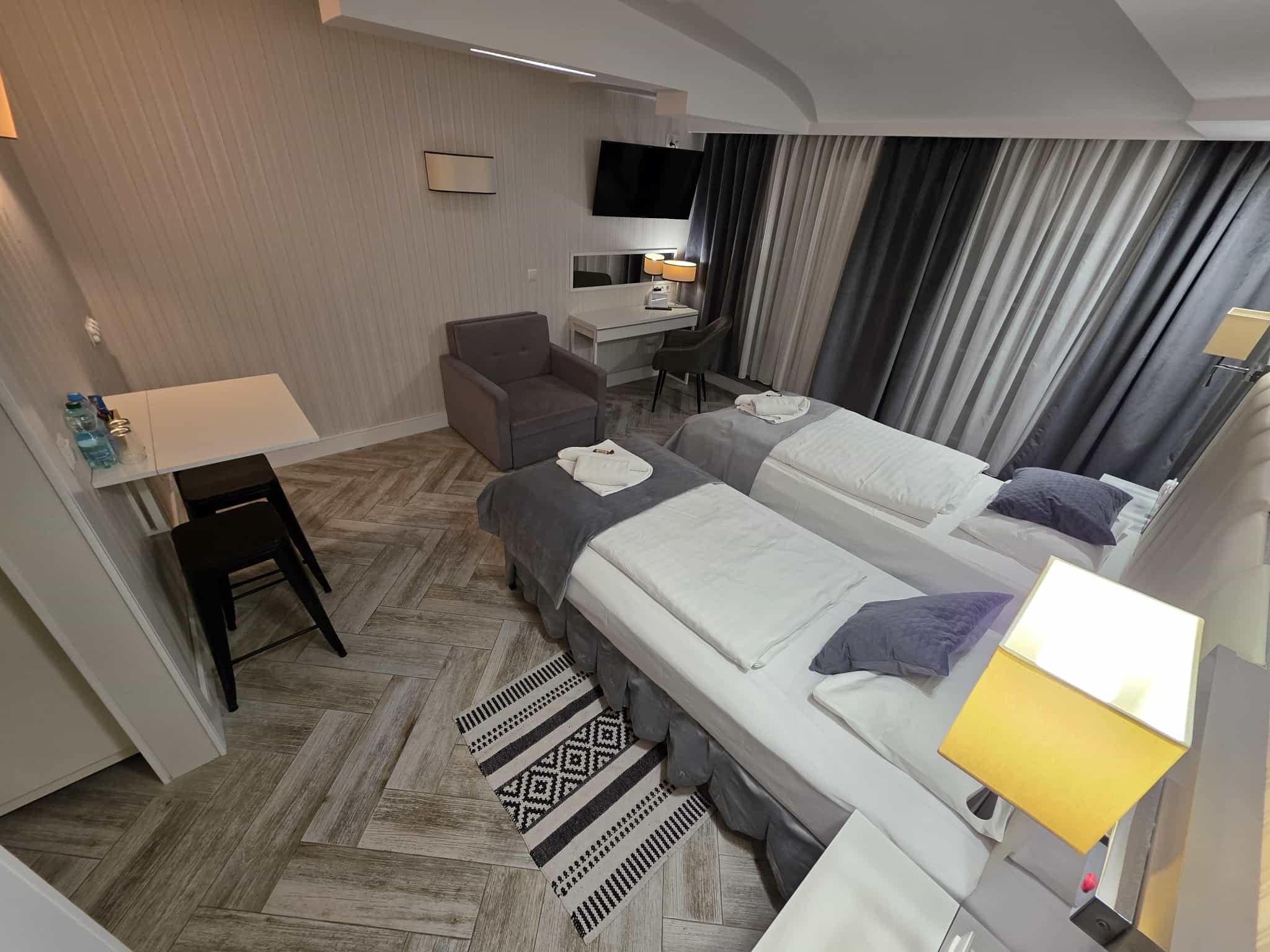 Comfortable studio apartment for 2 or 3 people. 2 single beds and an American-type folding chair.