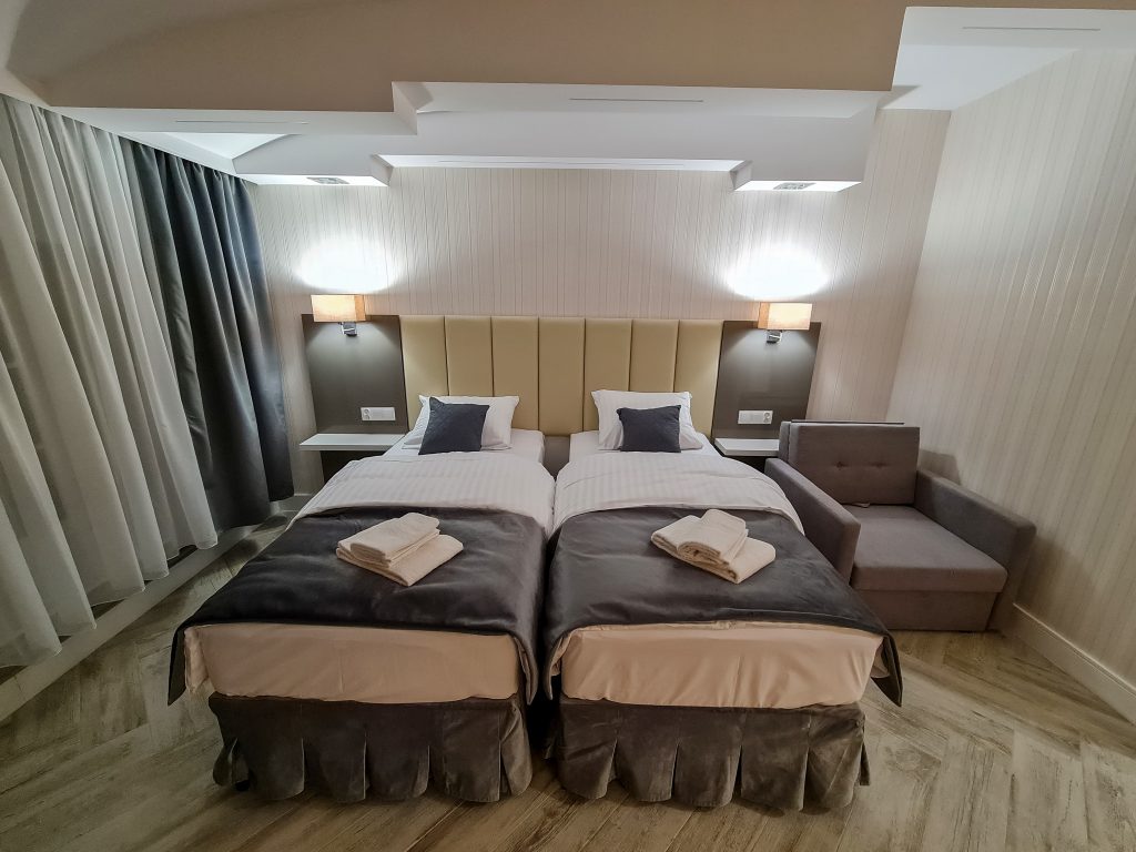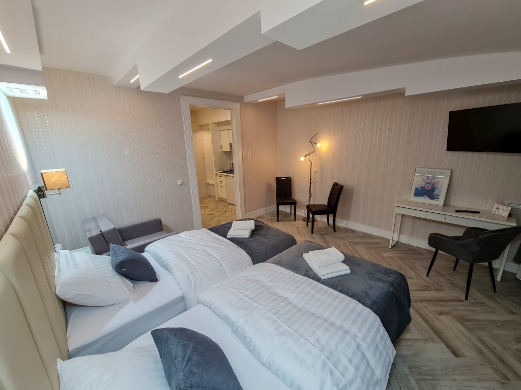 Wygodny apartament studio dla 2 lub 3 osób. 2 łóżka pojedyncze oraz fotel rozkładany typu "Amerykanka".