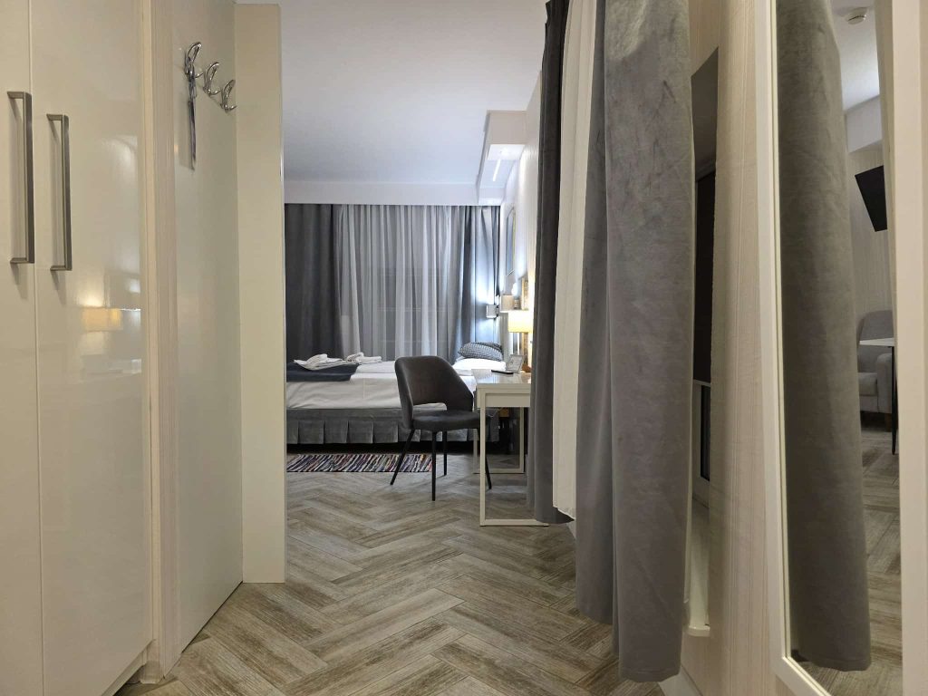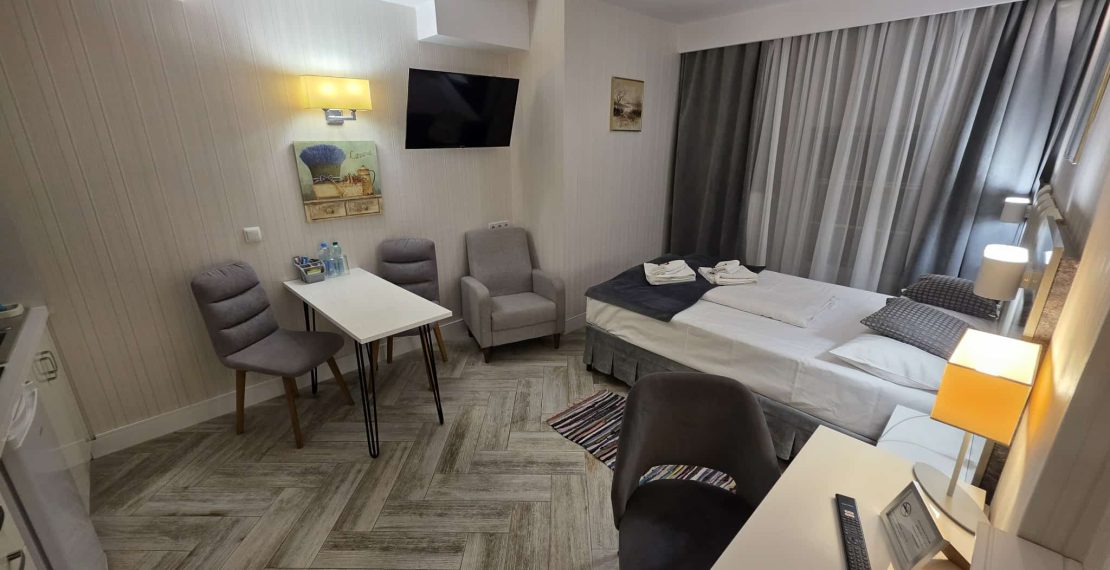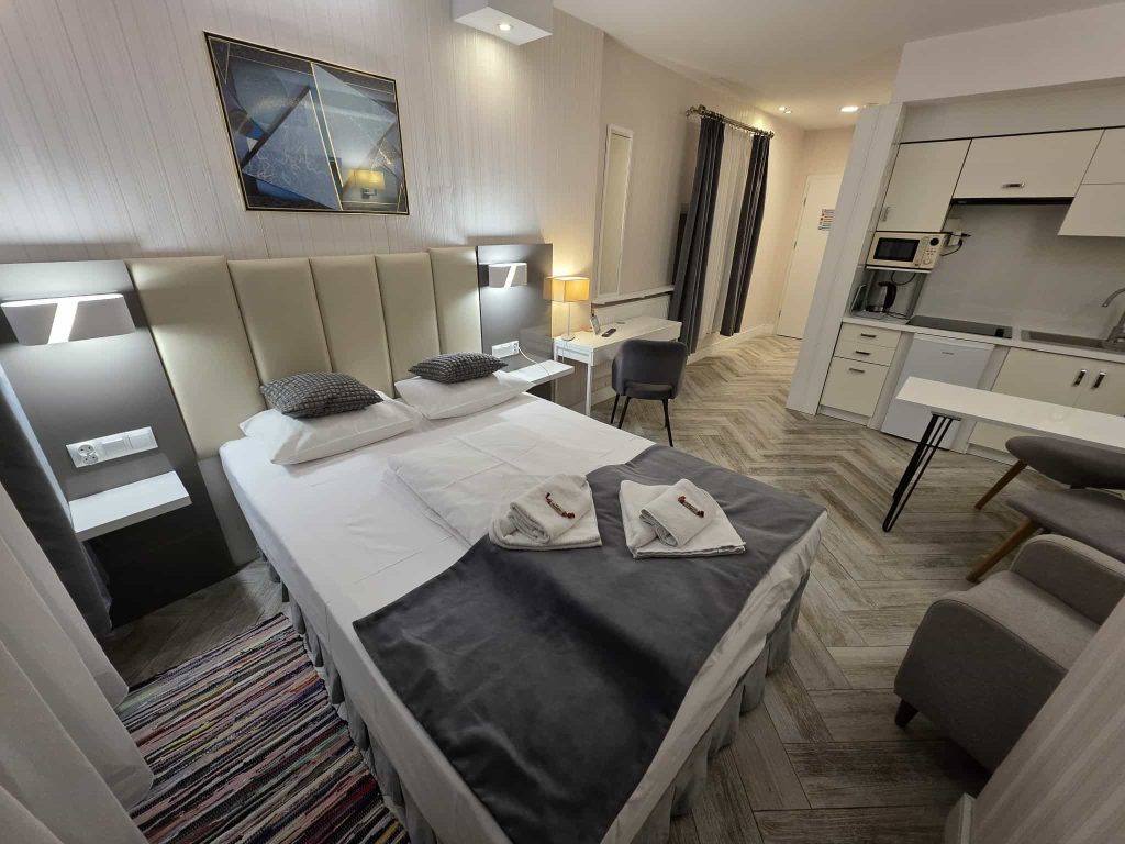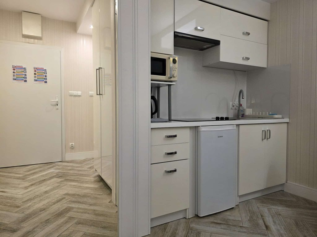 Wygodny apartament studio dla 2 osób z aneksem kuchennym i łazienką.
